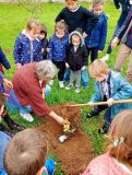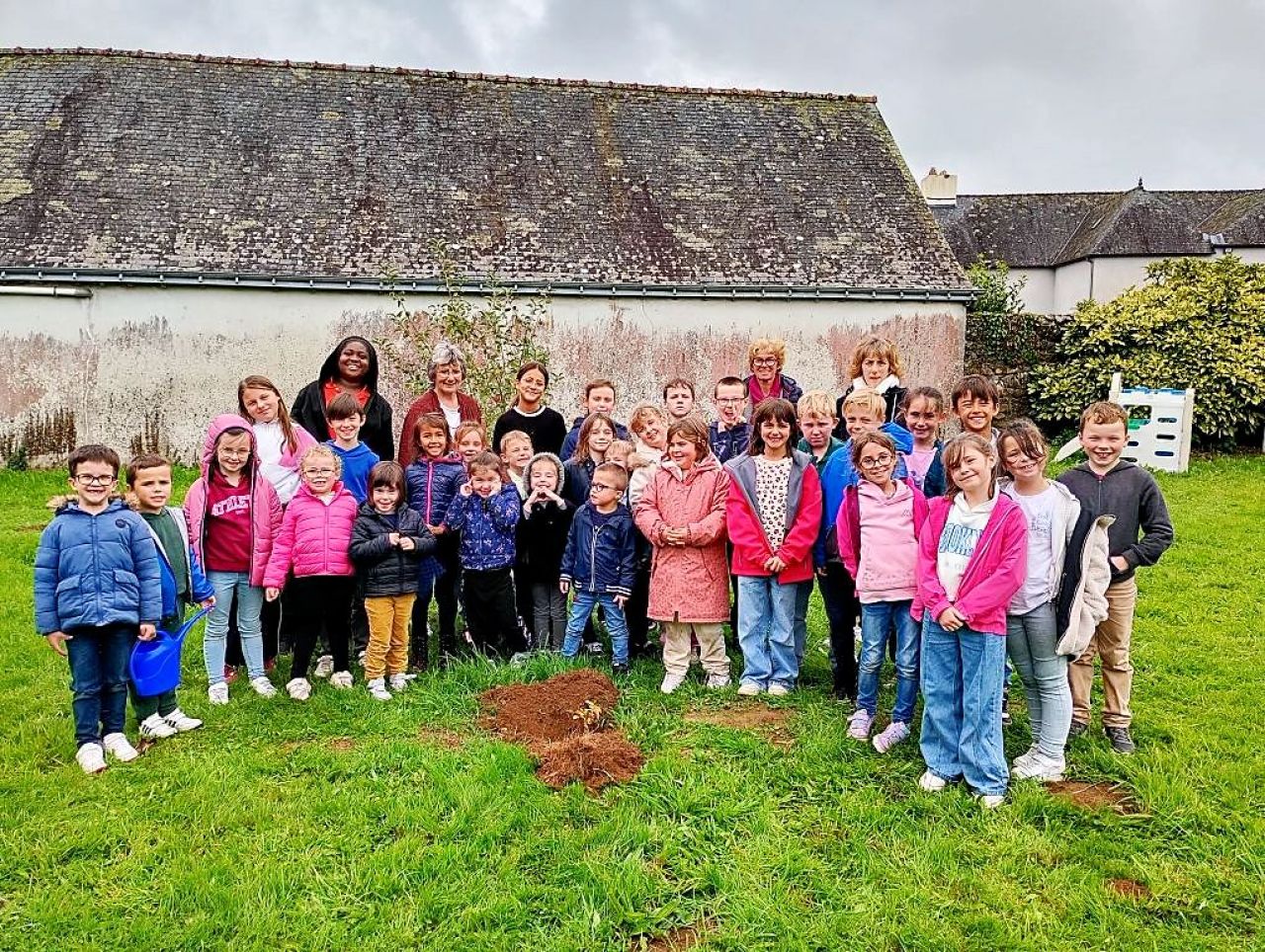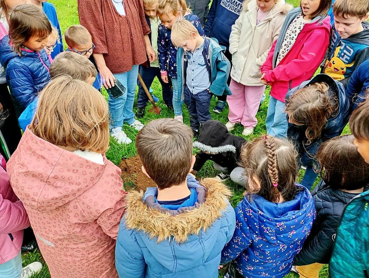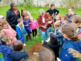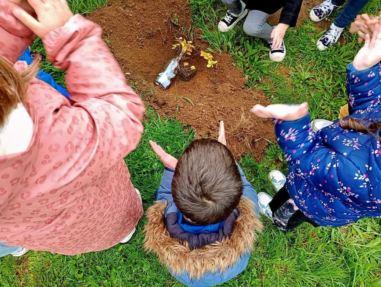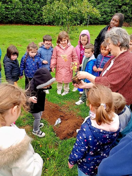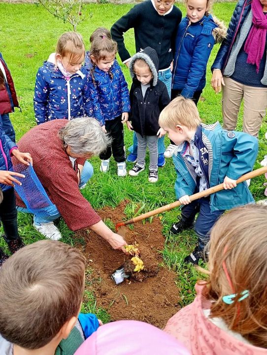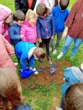 Pour marquer le centenaire de notre école, tous les enfants se sont retrouvés dans le pré pour planter un arbre.